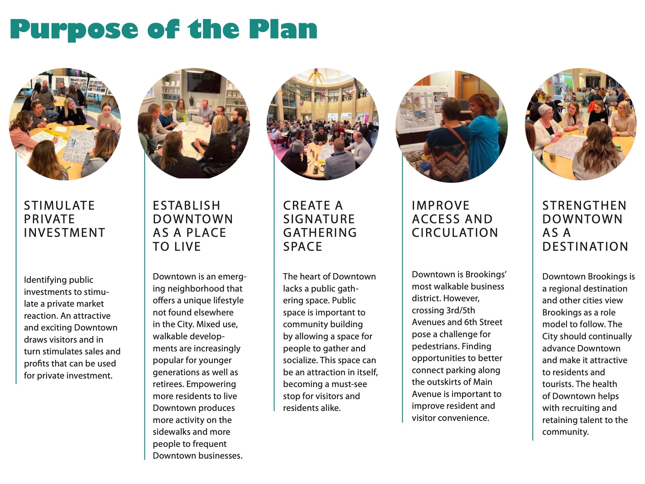 The foundation of this document is about shaping the future of Downtown by design rather than by default. By approaching the future intentionally, we create opportunities for thoughtful, strategic decisions that align with the goals of a more prosperous Downtown. The plan lays the groundwork for continued success by building on the strengths of the area, adapting to changing times, and updating infrastructure for sustained success.